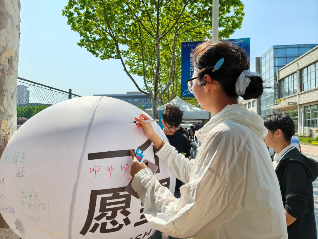 活动现场氛围热烈,路过的同学纷纷被吸引加入。大家写下心愿后,开心地展示手中的小礼品,不少同学在赢得奖品后主动邀请好友前来,竞答区与心愿区始终洋溢着欢声笑语,现场热闹非凡。