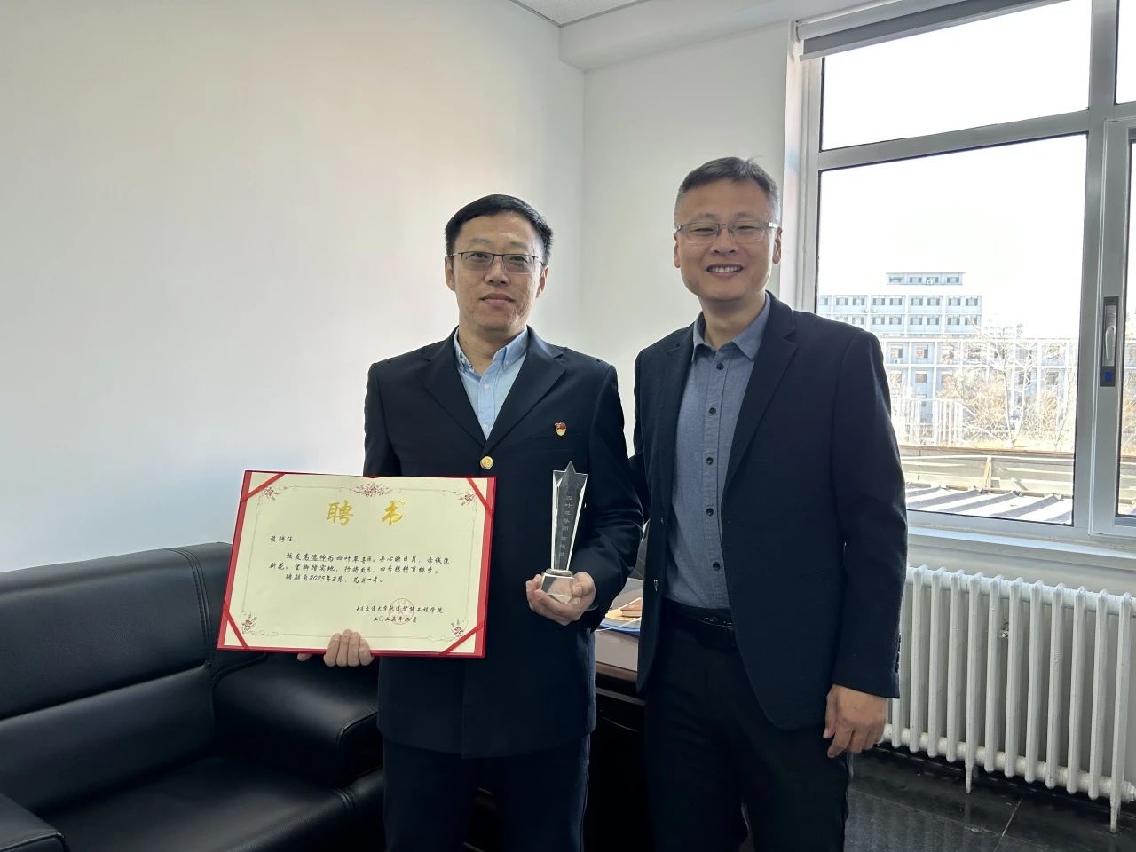 党委副书记邓晗为其颁发聘书与水晶奖杯,表彰其以赤子之心反哺教育的担当。高德帅动情表示:“这份荣誉让我感受到家的温暖,与母校的血脉联系更加紧密,未来将更加努力工作,共同培育铁路智能化建设的生力军。”