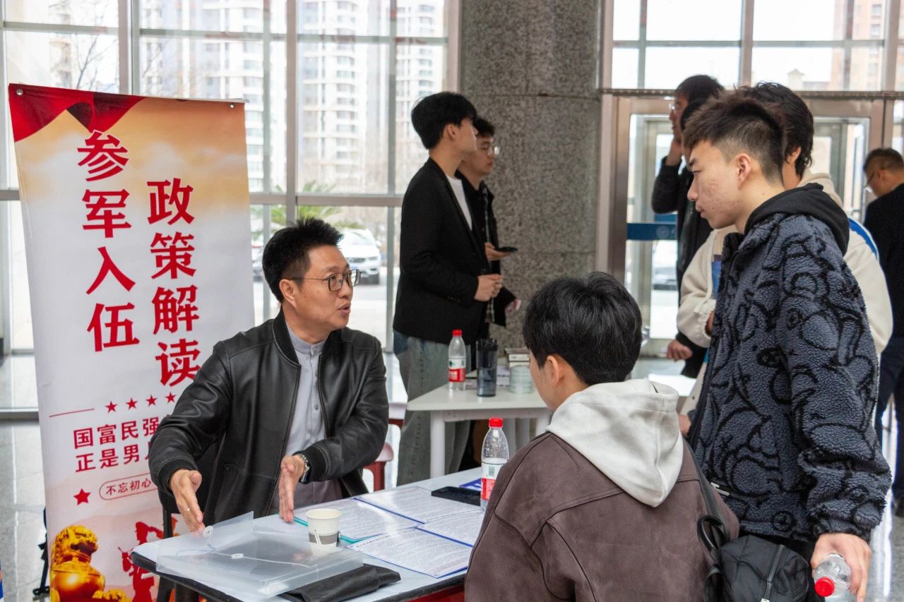 双选会同步设置“征兵咨询处”,学校党委学生工作部副部长燕阳在咨询处为学生答疑解惑,通过发放宣传手册、解读优待政策等方式,吸引众多学子驻足咨询。不少学生表示,通过此次咨询,他们对征兵入伍有了更加全面和深入的了解,也更加坚定了投身军营、保家卫国的决心。
