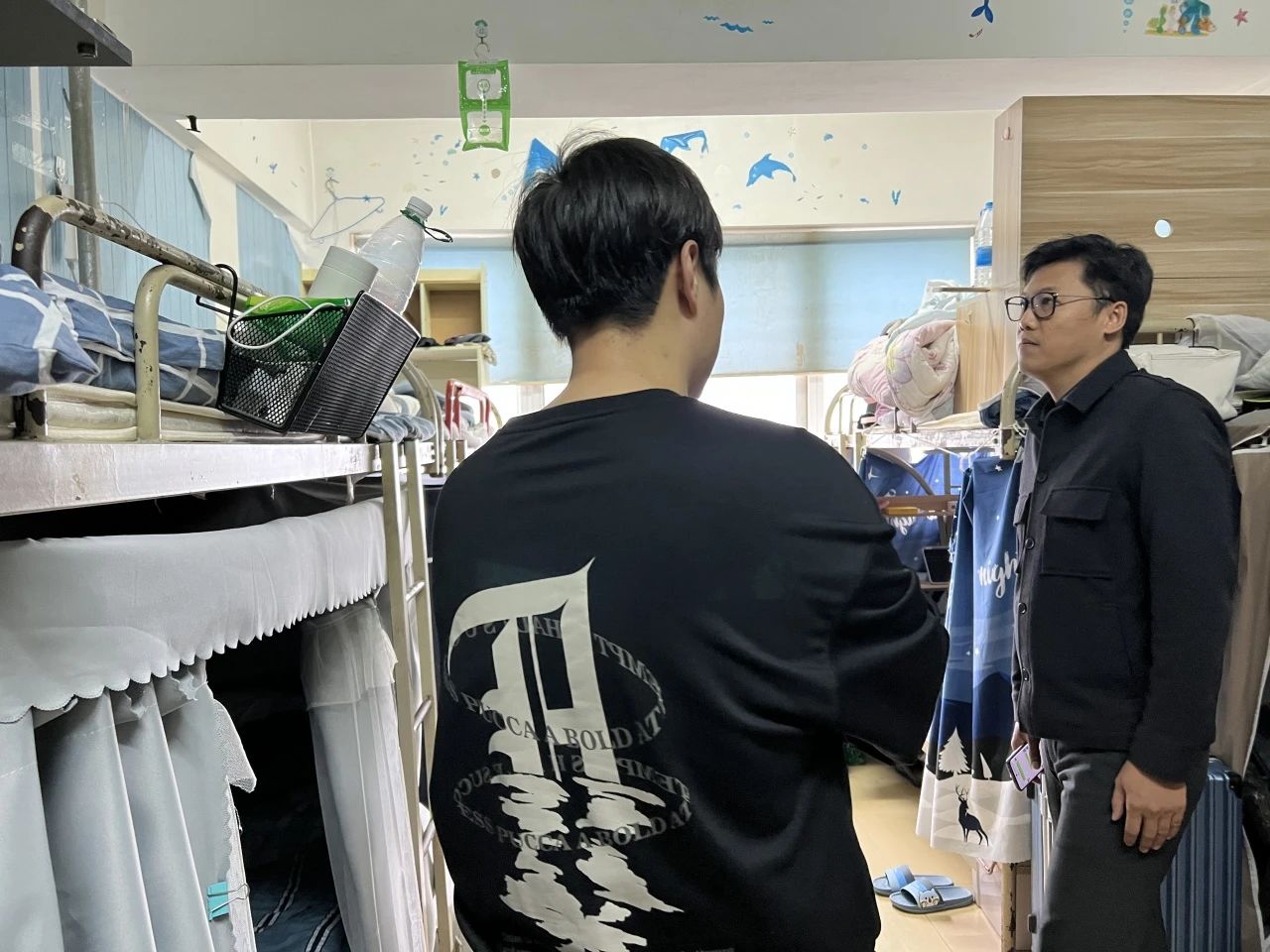 开展寝室走访工作进行面对面宣传及寝室卫生检查,老师们与同学们亲切交谈,深入了解同学们在学习、生活中遇到的问题及五一假期规划,并嘱咐同学们提高安全意识,将“强化安全教育,共建平安防线”牢记于心。