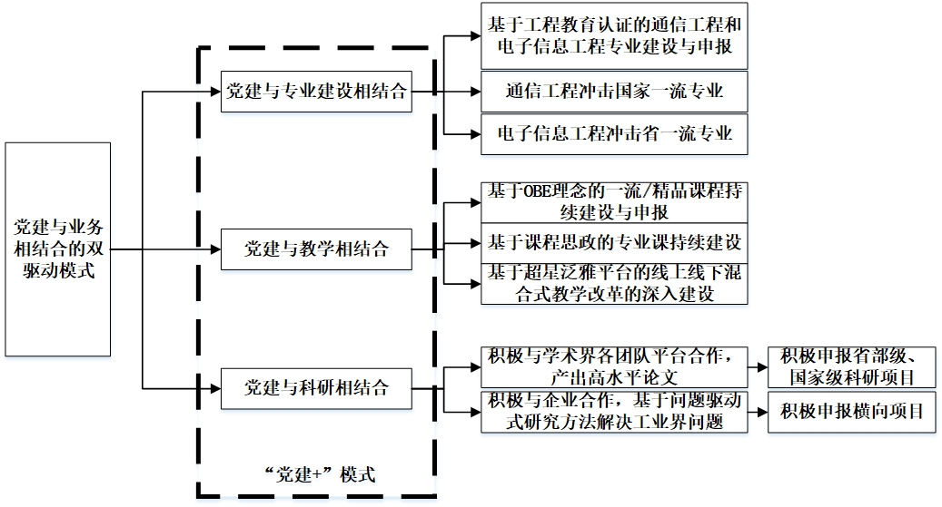 爱岗敬业,争挑重担,支部践行将党建与业务相结合的“党建+”工作模式,并于2021年进一步详细制定了基于“党建+“的专业发展规划(方案框架如图1所示),并取得丰硕成果。